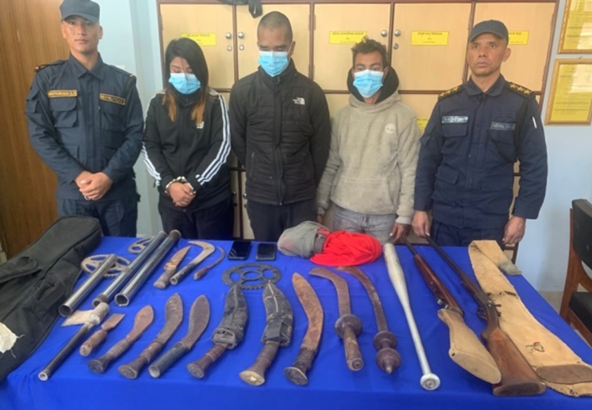 उनीहरूले मंसिर १६ गते ताहाचल बस्ने ७४ वर्षीया पुष्पा जोशीको घरबाट हतियारहरू चोरी गरेको आरोप छ।