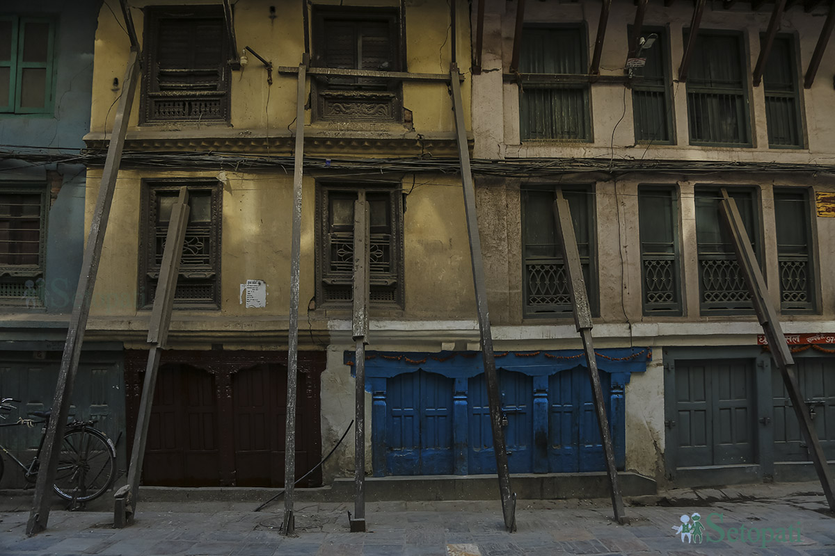 काठमाडौंको बसन्तपुर, हनुमानढोका, ललितपुरको पाटन लगायतका ठाउँमा टेको लगाएका घरहरू देख्न सकिन्छ। यस्ता संरचनामा मानिसहरू जोखिम मोलेर बस्न बाध्य छन्।