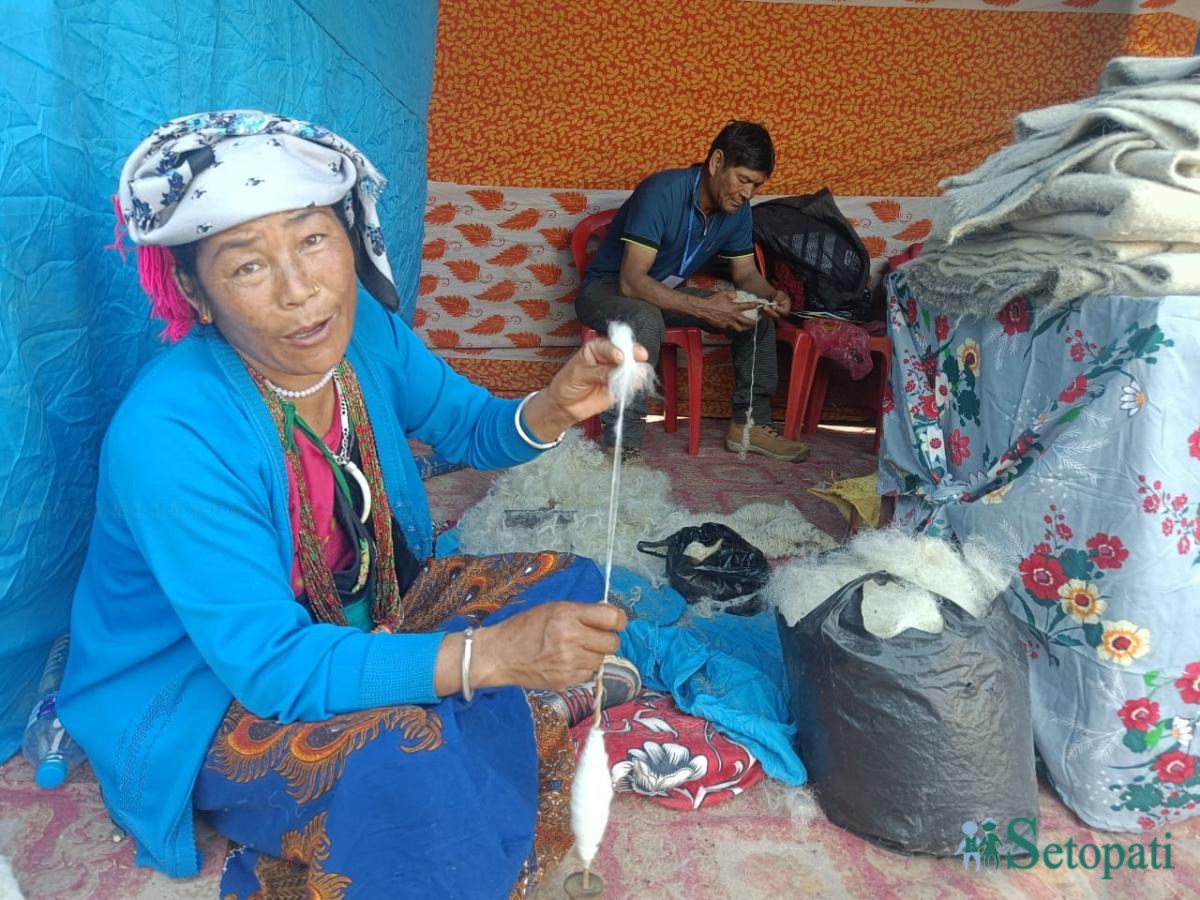 ‘बिक्री त धेरै भएको छैन, स्टल अवलोकनको लागि आउनेहरूलाई राडीपाखीबारे जानकारी दिन पाएकी छु,’ ऊनबाट धागो बाट्दै गरेकी कुमारीले भनिन्।