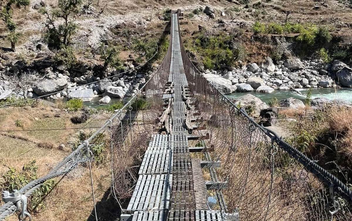 ‘फलामको डेक (फलेक) ले पुल भरिएको थिएन। खाली ठाउँमा गाउँलेहरूले काठका डेक बनाएर हाले,’ उनले भने, ‘त्यसपछि अपुग भएका ठाउँमा फलामको डेक हाल्ने योजना धेरै पटक बने पनि काम भएन। काठका डेक पुराना भएपछि हामी गाउँलेले नै फेर्ने गरेका थियौं।’