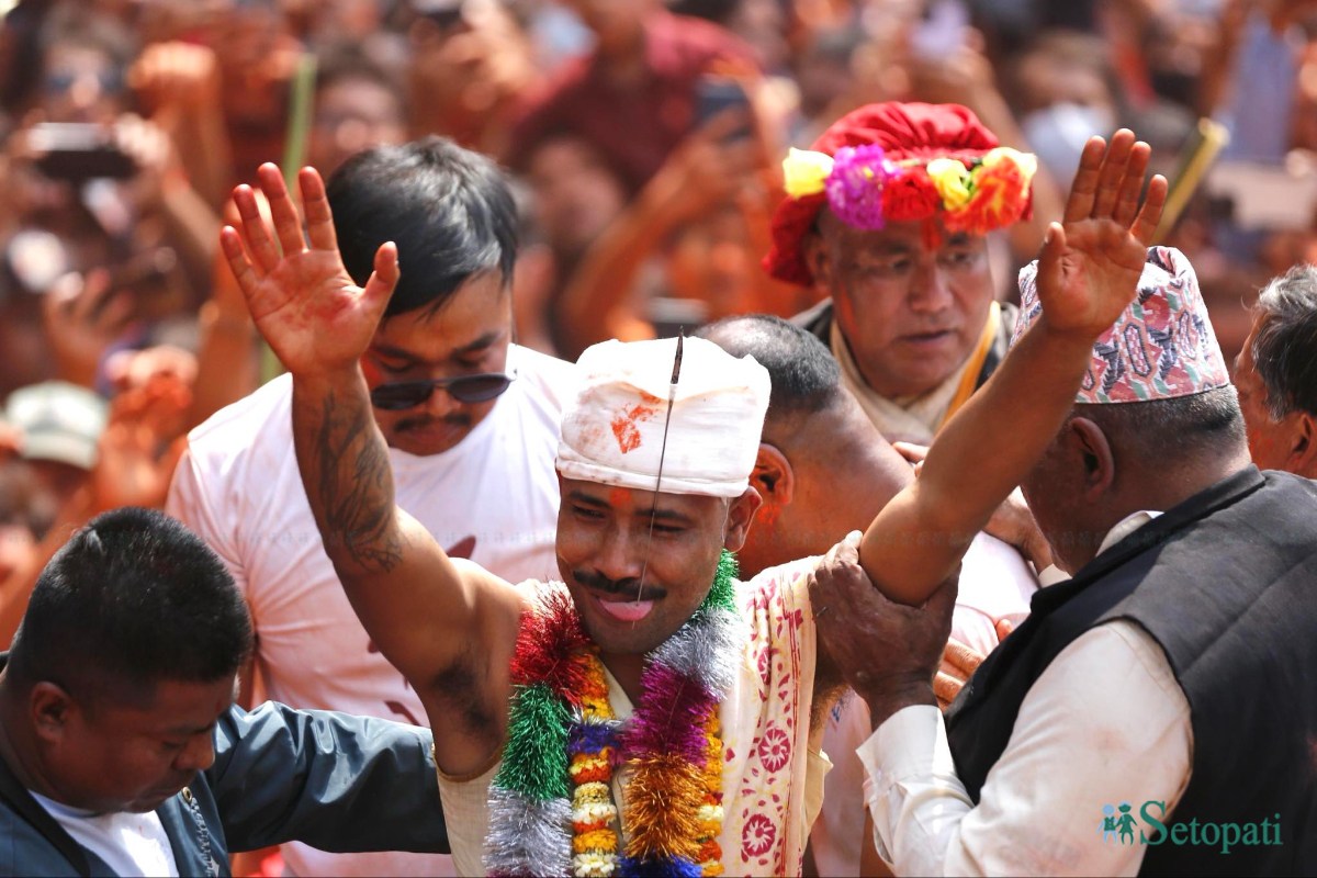यो पनि: नयाँ पुस्तामा सर्दै बोडेको जिब्रो छेड्ने जात्रा, २७ वर्षीय सुजन पहिलोपटक जिब्रो छेड्दै