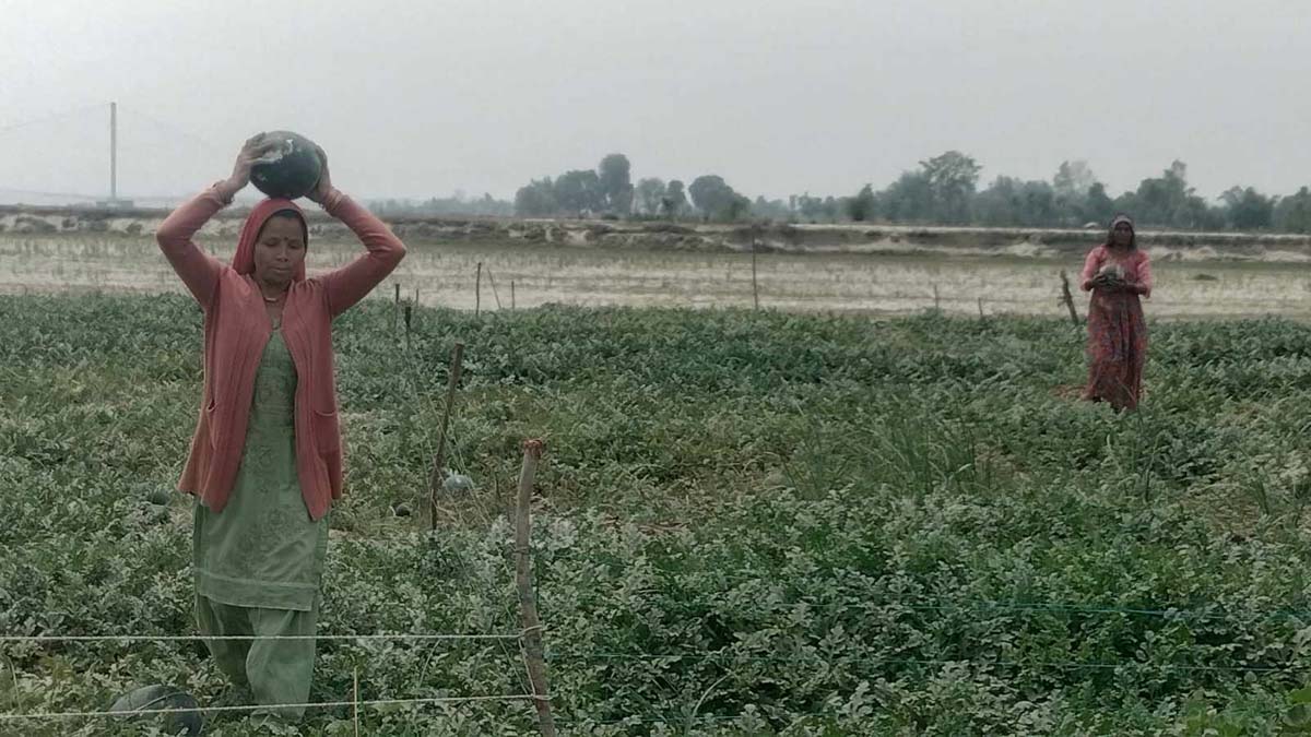 ‘वर्षौंदेखि बगरमा खेती गर्दै आएका छौँ । माघदेखि जेठसम्म बगरमा खेती गर्छौं, अरु समयमा मजदुरी,’ उनले भनिन्, ‘जङ्गली जनावर र चोरीबाट उत्पादन जोगाउन बगरमा बनाइएको छाप्रोमै बास बस्छौं।’