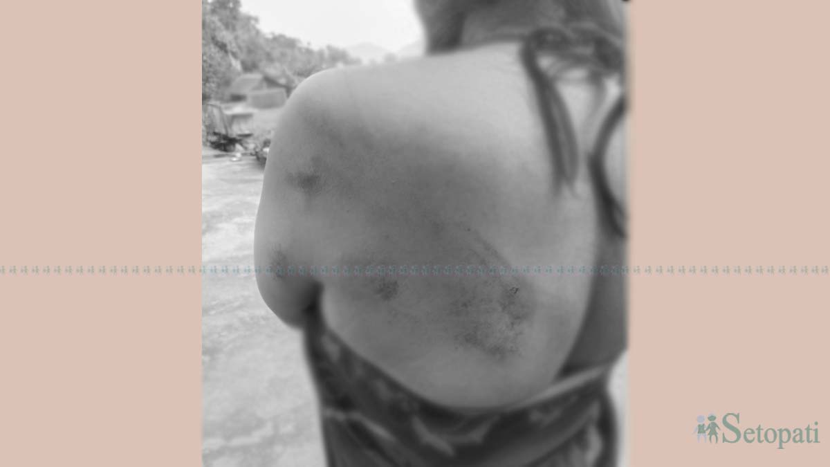 'शरीरभरी डाम देखेपछि श्रीमानले के भएको हो नढाँटी भन् भनेर गाली गरे,' उनले भनिन्, 'अनि बल्ल अघिल्लो दिनमा भएको घटना विस्तृतमा सुनाएँ।'