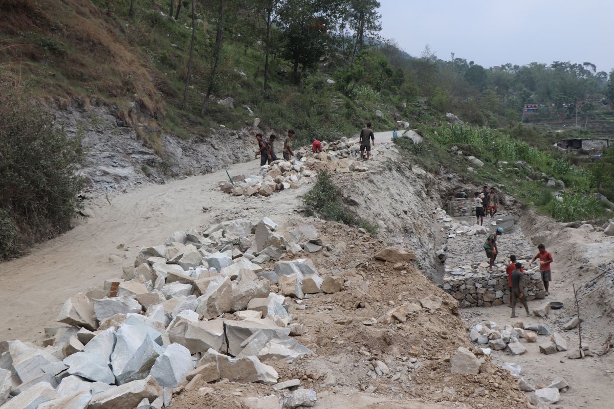 हाल सडक फराकिलो बनाउने र पर्खाल निर्माण गर्ने भइरहेको छ।