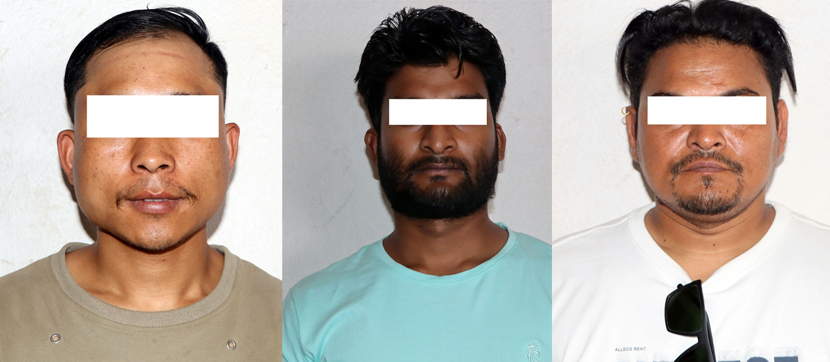 बाँके खजुरा गाउँपालिका वडा-८ का २४ वर्षीय मोहमद, नवलपरासी पूर्व गैंडाकोट नगरपालिका-१३ घर भई काठमाडौं महानगरपालिका-२६ बस्ने ४३ वर्षीय सन्तोष परियार, सोही वडामा बस्ने तनहुँ भानु नगरपालिका-७ घर भएका २५ वर्षीय अन्जिल गुरूङ पक्राउ परेका छन्।