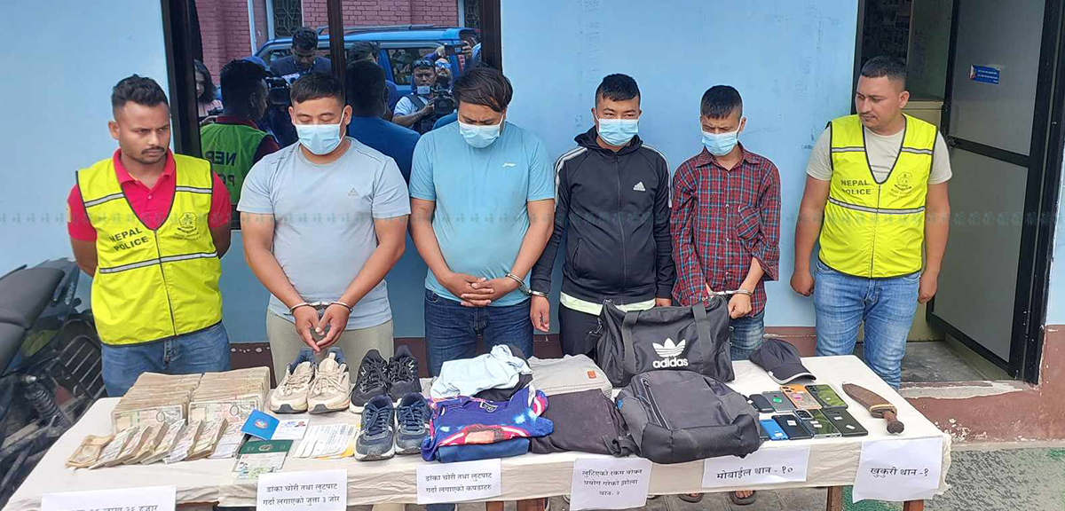 गत असार ४ गते भक्तपुर सूर्यविनायक- ४ दधिकोट बस्ने ४५ वर्षीय डिल्लीबहादुर राउतको घरबाट उनीहरूले दुई करोड नेपाली रकम लुटेको आरोप छ। लुटपाटमा संलग्न एक जना भने फरार छन्।