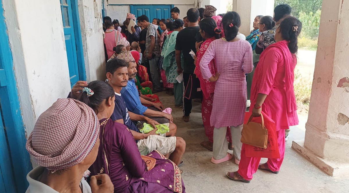 लाइनमा बसेको दुई घण्टा भएको थियो, निकै हैरान देखिन्थे। टाउकाको पुछ्दै लौराका सहारामा उभिएका थिए। पालो आउन अझै कति बेर लाग्छ भन्ने पत्तो थिएन।