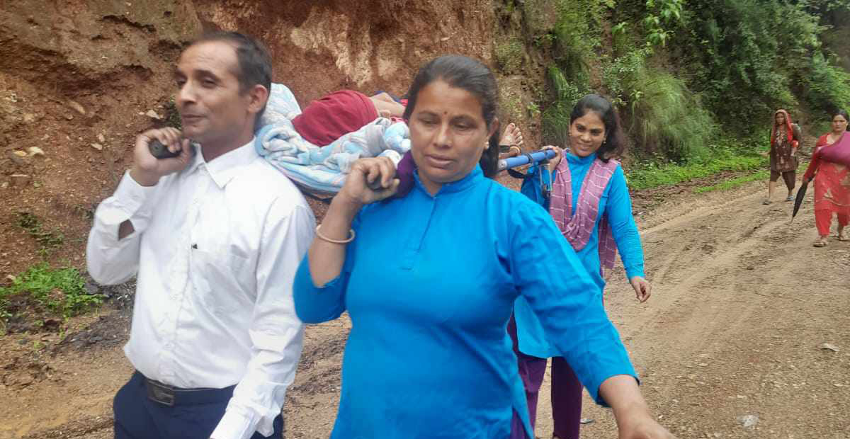 उनीहरूले सुत्केरीलाई स्ट्रेचरमा राखेर लैजाँदै गरेको तस्बिर सामाजिक सञ्जालमा छ्याप्छ्याप्ती छ। सबैले प्रशंसा गरेका छन्।