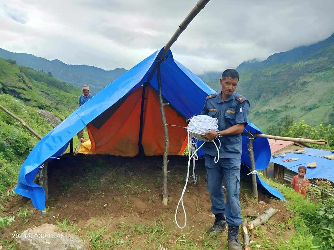 अविरल वर्षाका कारण गाउँको माथिल्लो भिरलो भागबाट पहिरो खस्ने जोखिम बढेकाले परिवारलाई नै सारिएको जाजरकोटका प्रहरी प्रमुख डिएसपी पुरूषोत्तम प्रसाद पाण्डेले जानकारी दिए।