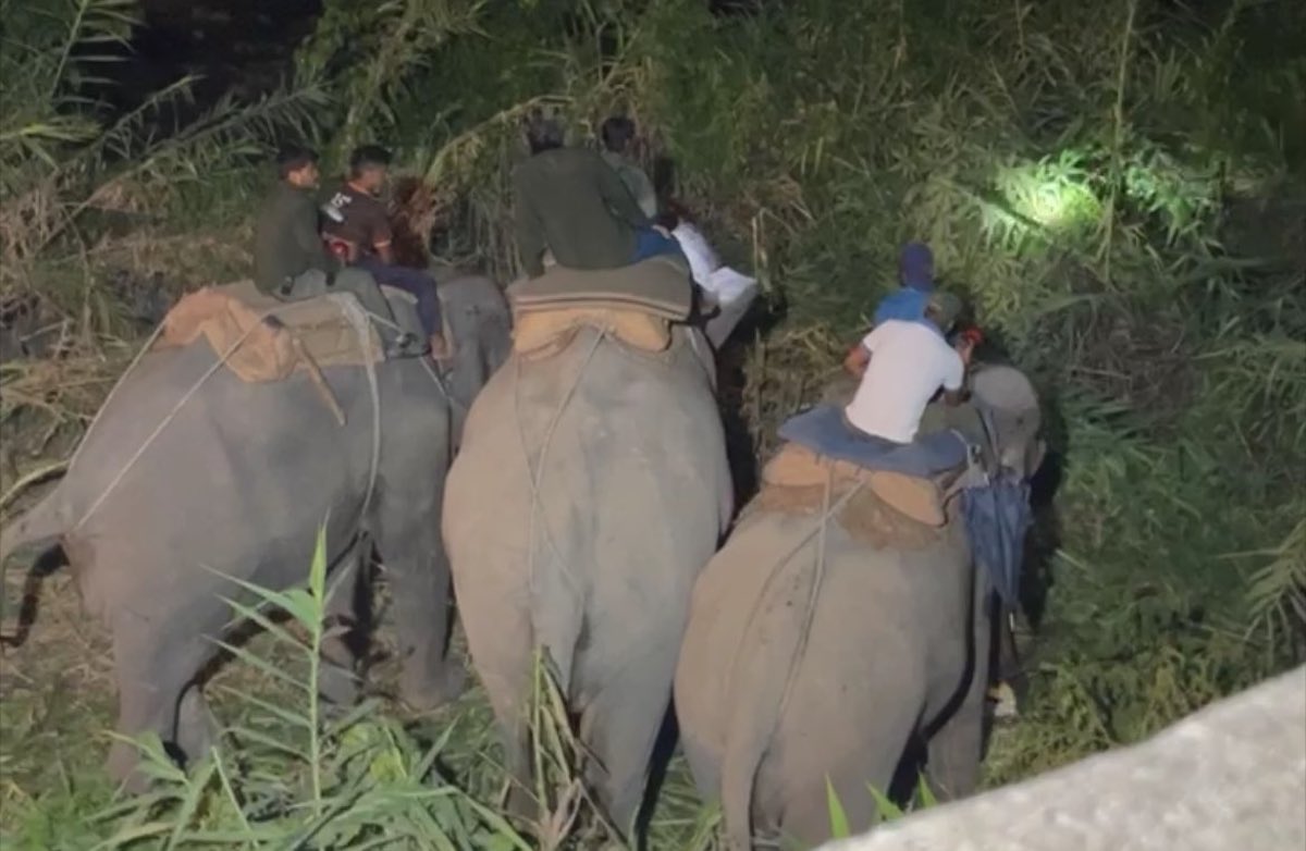 बाघ नियन्त्रणमा लिने क्रममा दुईवटा हात्ती तर्सिएर भागेका थिए।