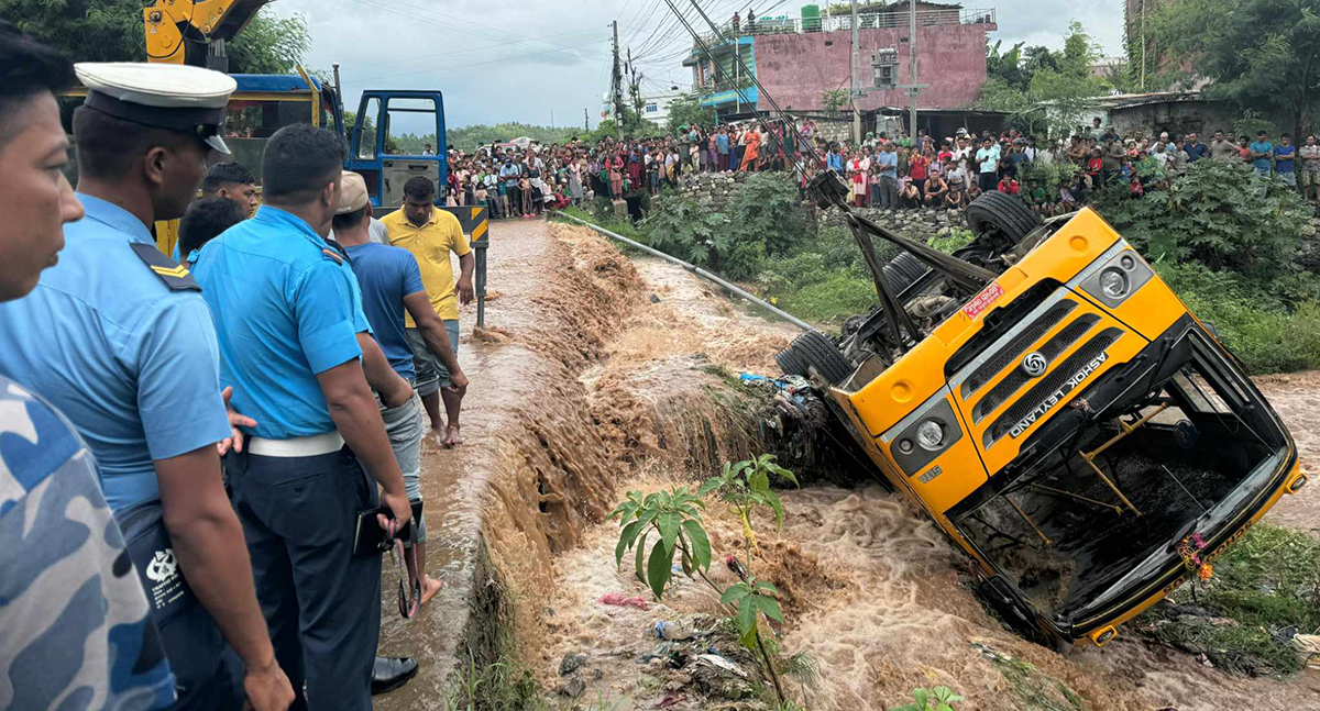 सुर्खेतमा स्कुल बस दुर्घटना हुँदा ११ जना घाइते भएका छन्।