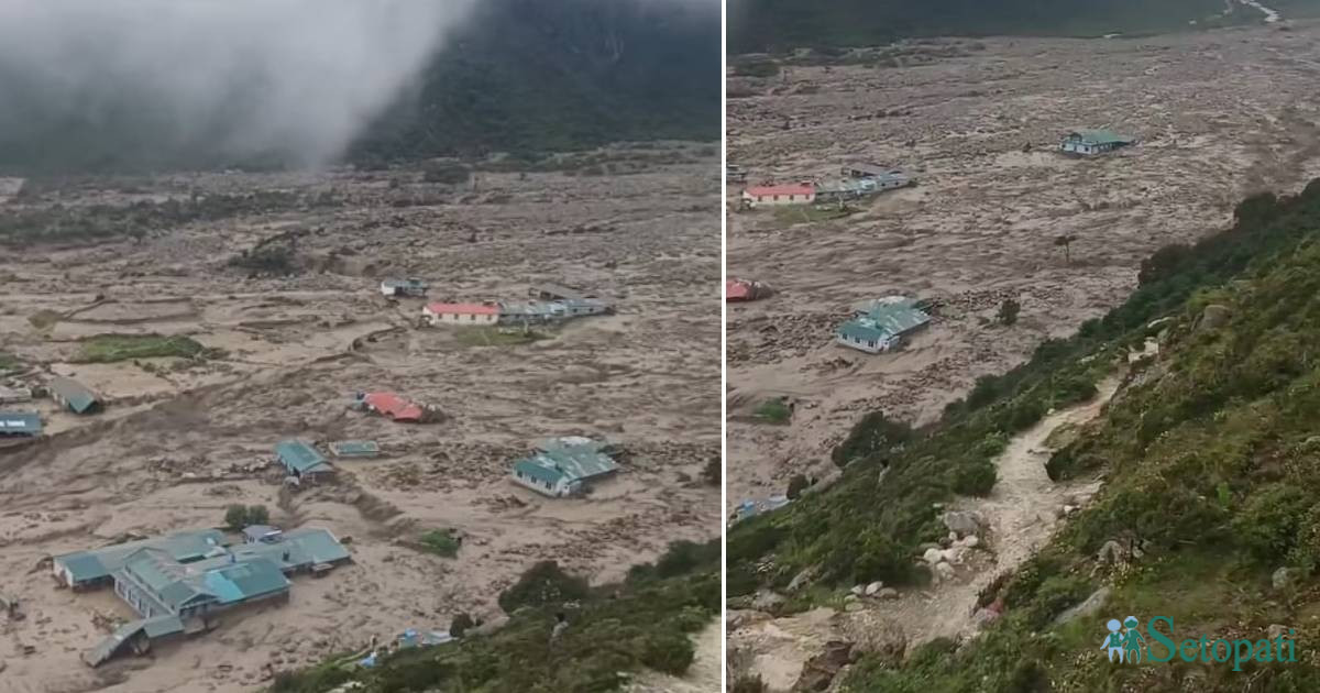 सोलुखुम्बु जिल्लाको खुम्बु क्षेत्रमा पर्ने थामे भन्ने ठाउँमा शुक्रबार लेदोसहित भीषण बाढी आएको छ।