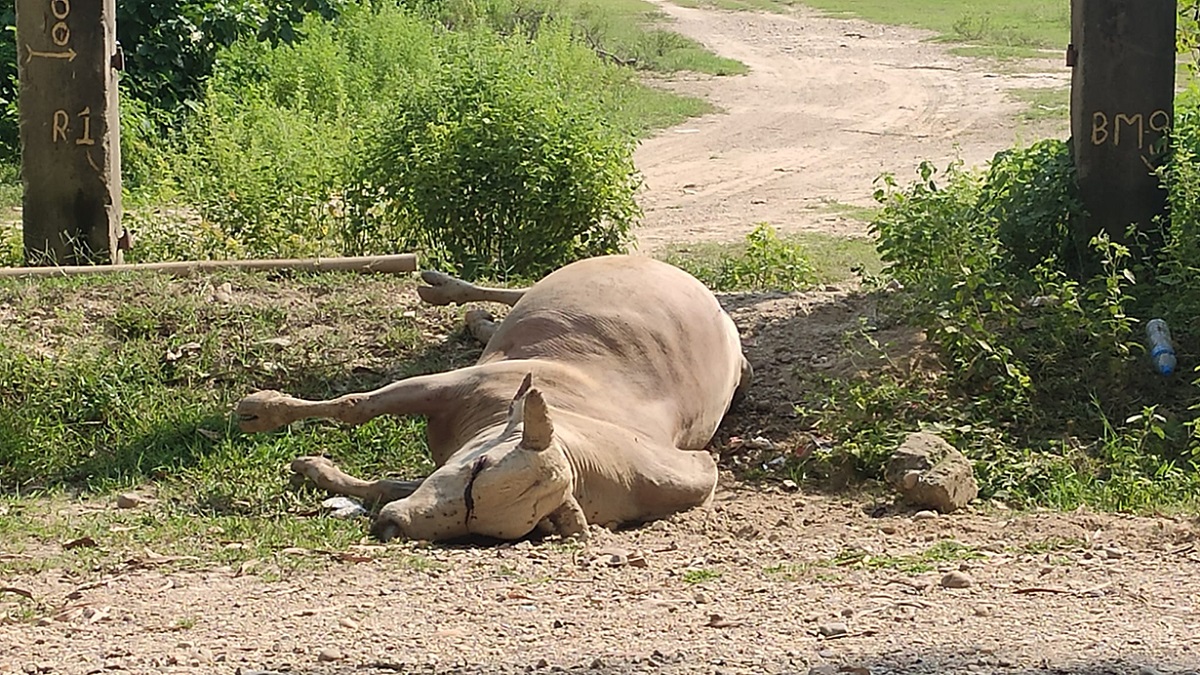 ‘मरिसकेको साँढेको आँखा फुटाइएको पाइएको छ, जिउभरी चोट र डाम देखिन्छ,’ प्रत्यक्षदर्शी विनोद महतोले भने।