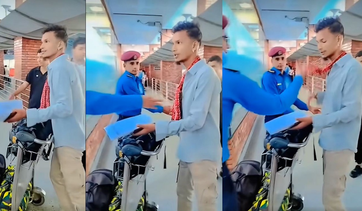काठमाडौंस्थित त्रिभुवन अन्तर्राष्ट्रिय विमानस्थल हुँदै विदेश जान लागेका एक युवालाई प्रहरीले गरेको व्यवहार देखाउने एउटा भिडिओ हिजोआज सामाजिक सञ्जाल फेसबुक लगायतमा चर्चामा छ।