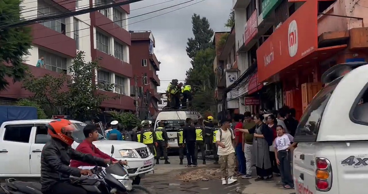 अहिले प्रहरी र महानगर प्रहरी घटनास्थलमा पुगेका छन्। महानगर प्रहरीले पोलमा रहेको तारहरू काटेर निकाल्ने प्रयास गरिरहेको बताएको छ।