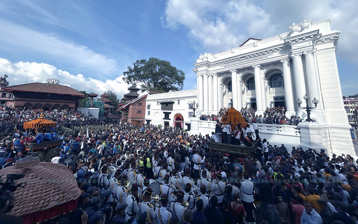 मंगलबार परेको इन्द्रजात्रामा राष्ट्रपति रामचन्द्र पौडेल, उपराष्ट्रपति रामसहाय प्रसाद यादव, प्रधानमन्त्री केपी शर्मा ओली लगायत विशिष्ट व्यक्तिहरू सहभागी भएका छन्।