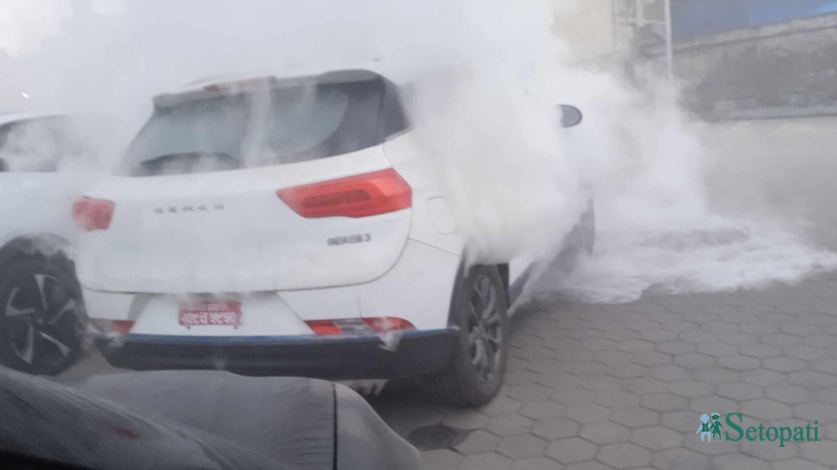 सोमबार बिहान सीतापाइलामा सडक छेउ रोकेर राखिउको बागमती प्रदेश ०१-०२९ च ५९५० नम्बरको विद्युतीय कारमा आगलागी भएको हो।