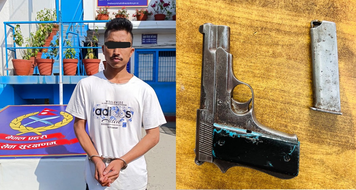 उनीबाट युएसए लेखिएको पेस्तोल बरामद भएको हो। गोली भने फेला परेको थिएन।