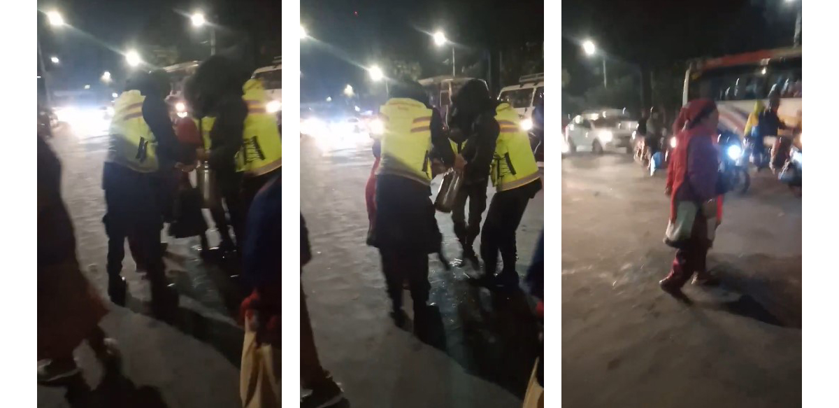 भिडिओमा नगर प्रहरीले महिलाबाट थर्मस खोसेर लगेको देखिन्छ। सो क्रममा महिलाले कराउँदै प्रतिकार गर्न खोजेकी छन्।