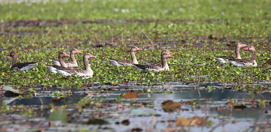 ‘कलहाँस ताल क्षेत्रमा पुगेपछि रौनकता छाएको छ,’ चरा संरक्षणकर्मी सुवन चौधरीले भने, ‘यस पन्छीले लस्करै जलविहार गरेको दृश्य मनमोहक हुने गरेको छ।’