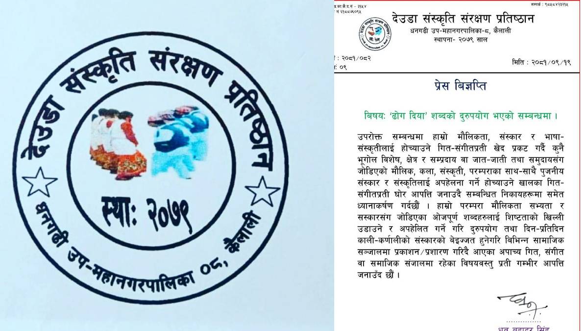 ‘ढोग दिया’ शब्दको दुरूपयोग भएकोप्रति देउडा संस्कृति संरक्षण प्रतिष्ठानले आपत्ति प्रकट गरेको छ।