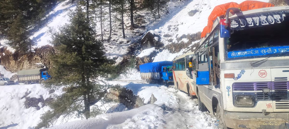 हिमपातका कारण मुगु जाने १७ वटा गाडी र यात्रुहरु तीन दिनदेखि बाटोमै अड्किएको यात्रु शिवचन्द्र कार्कीले टेलिफोनमार्फत जानकारी बताए।