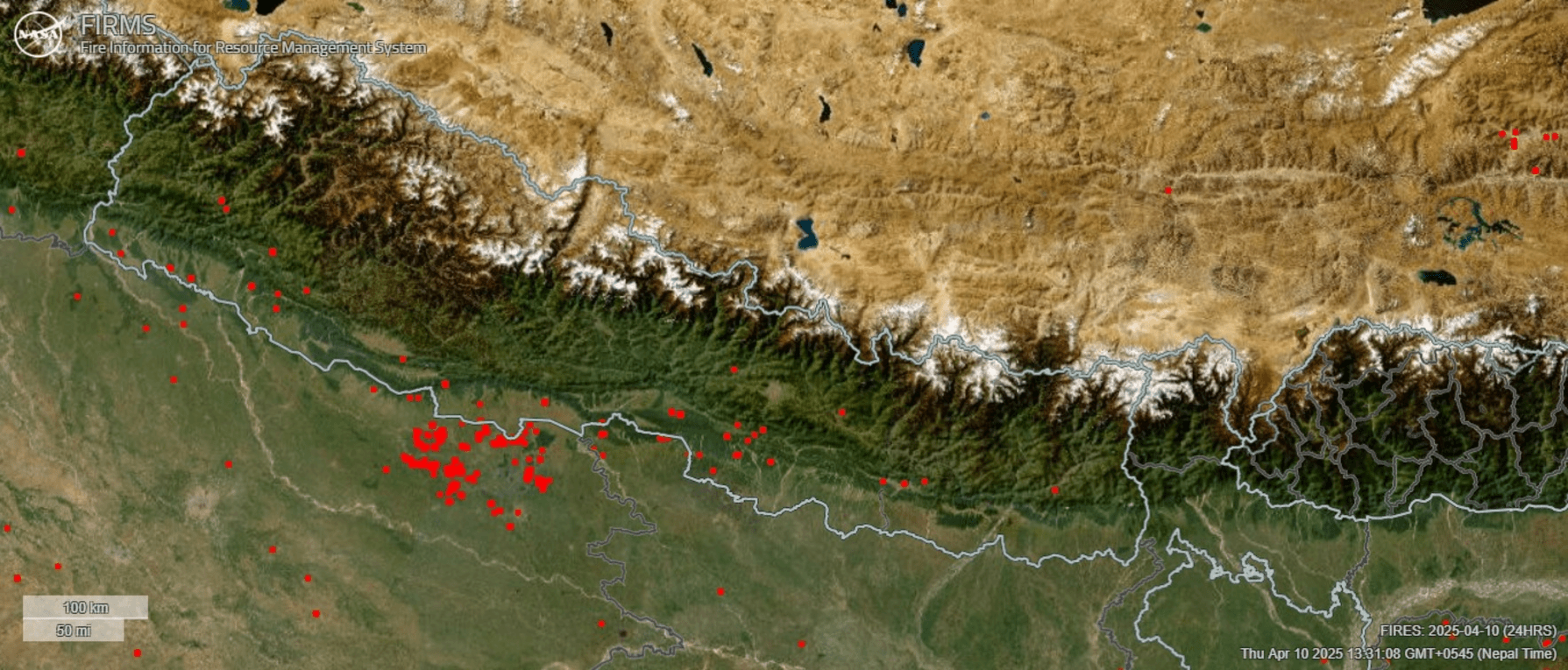 विश्वभरको आगलागीको अभिलेख राख्ने अमेरिकी अन्तरिक्ष संस्था नासाको एफआइआरएमएसमा डढेलोको भयावह अवस्था देखिएको थियो।