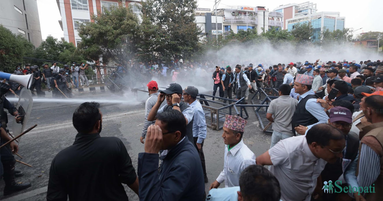 शिक्षकहरू ब्यारिकेड तोडेर अघि बढ्न खोजेपछि प्रहरीले पानीको फोहरा हानेको जिल्ला प्रहरी परिसर काठमाडौंका एसपी अपिलराज बोहराले जानकारी दिए।