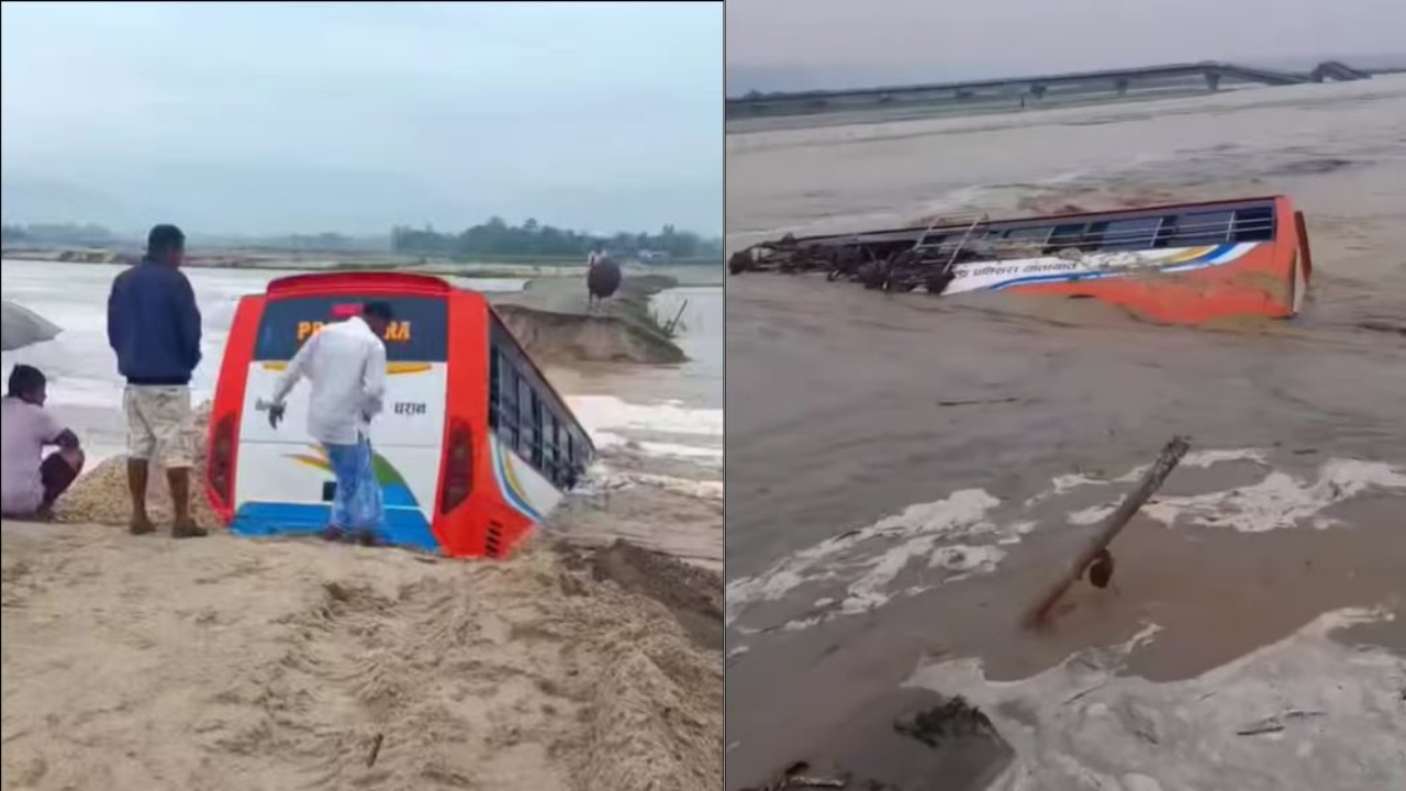 बसलाई बाढीले फसेको ठाउँबाट केही पर पुर्याएको थियो।