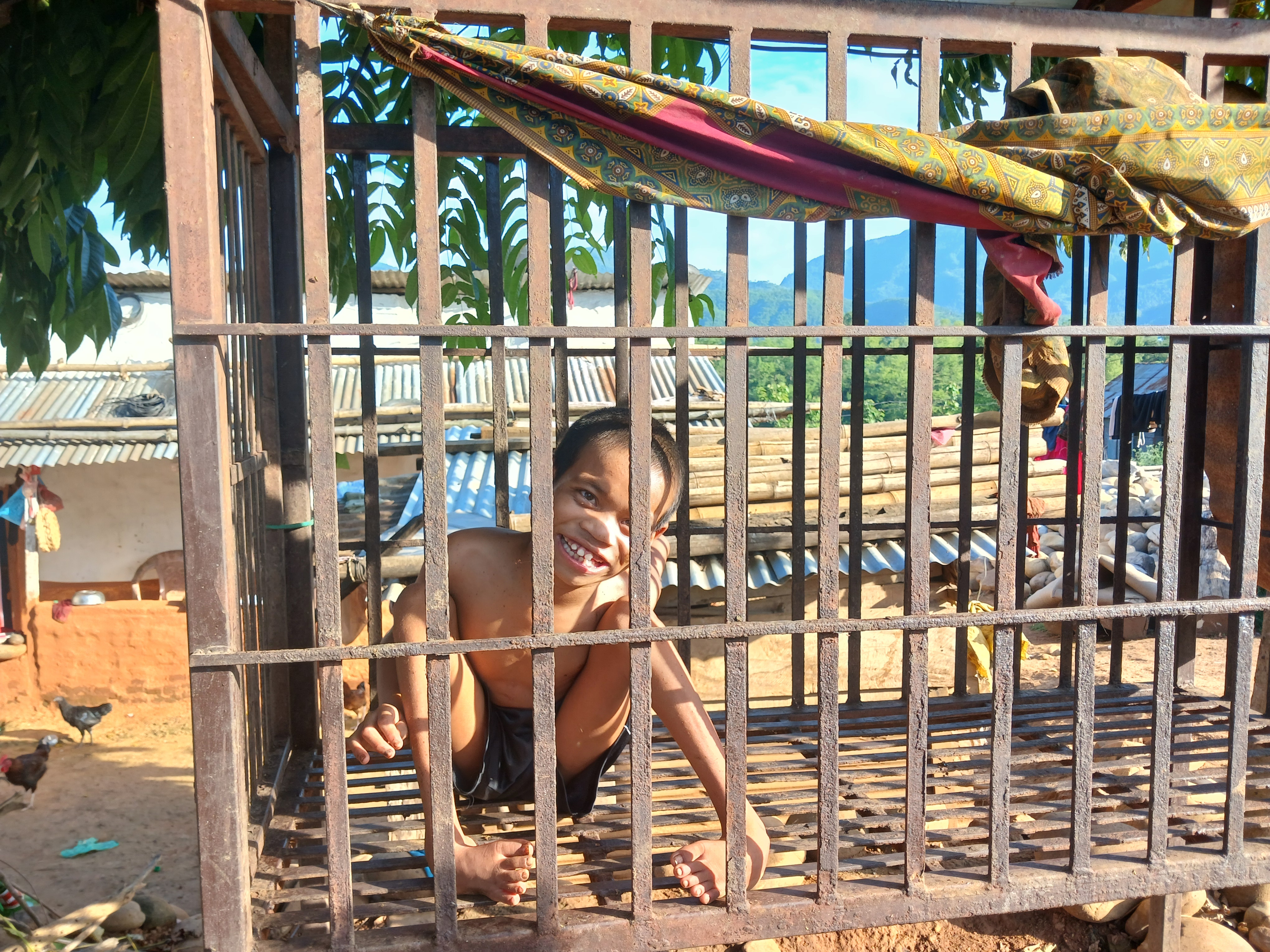 ‘घरायसी कामकाज केही गर्न पाइँदैन, छोरालाई मात्रै हेरेर भएन, बिहान साँझ खानलाई काम गर्नुपर्छ, यसो आँखा छल्यो कि सडकतिर, गाउँतिर निस्कने भएकाले सडक छेउमा घर हुँदा गाडीबाट जोगाउन मुस्किल भएपछि सुरक्षाको लागि फलामको खोर बनाएर राखेको हुँ,’ उनले भनिन्, ‘आफूले जन्माएको छोरालाई खोरमा थुनेर राख्ने रहर कसलाई पो होला र? बाध्यता परेपछि जे पनि गर्नुपर्ने रहेछ ।’