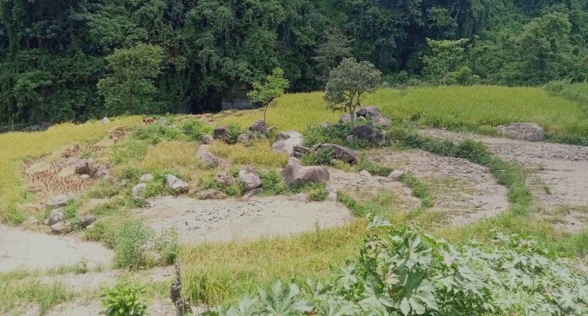 खेतमा बाढी पस्दा भोजपुरको कावा खोला आसपास थन्काउने बेलाको बर्खे(साउने) धानबालीमा क्षति पुगेको छ।