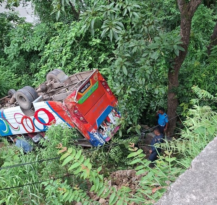 आइतबार अपराह्न सवा ४ बजेतिर आँबुखैरेनी गाउँपालिका-२ स्थित ऐनापहरानजिकै बस सडकबाट तल खसेको हो।