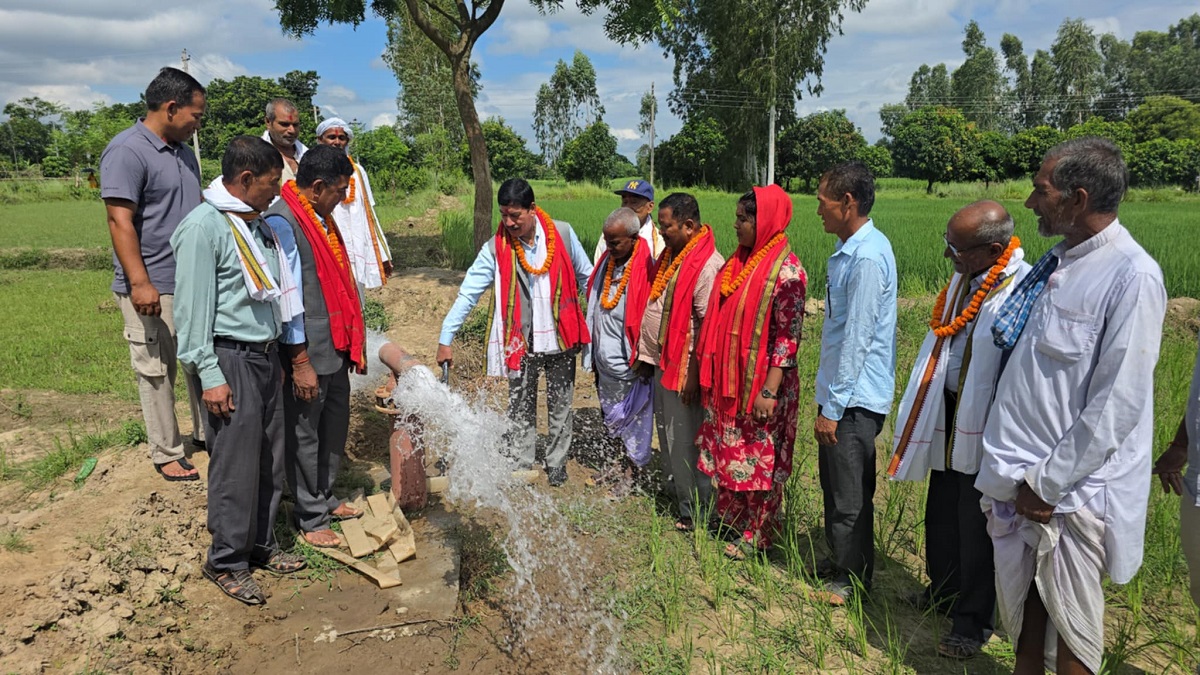 खडेरीले रोपाइँ गर्न नपाएका किसानको सहायतार्थ गोलबजार नगरपालिका वडा नम्बर २ निपनियामा डिप बोरिङ गरिएको छ।