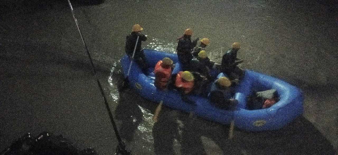 काठमाडौंको बल्खु क्षेत्रमा उद्धार तथा निगरानीका लागि र्याफ्टिङ बोटको प्रयोग गरिएको छ।