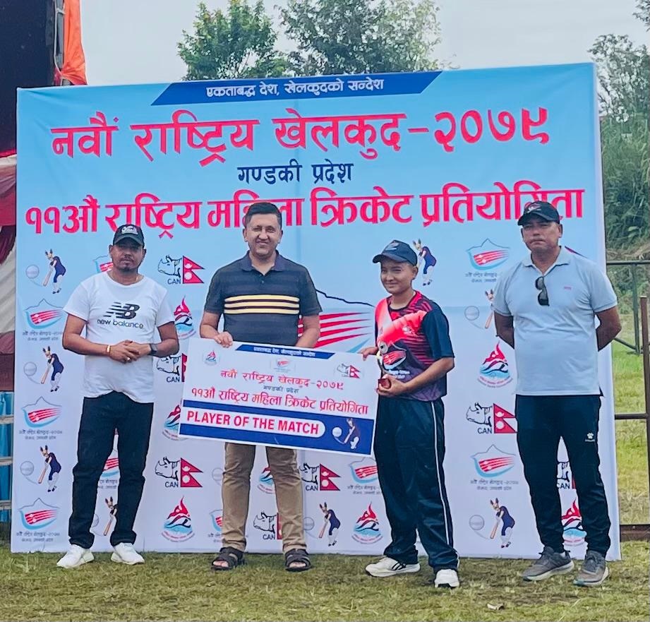 नवौँ राष्टिय खेलकुुद प्रतियोगिताअन्तर्गत महिला क्रिकेटमा नेपाल पुलिसले कर्णाली प्रदेशलाई ६३ रनले पराजित गरेको छ।