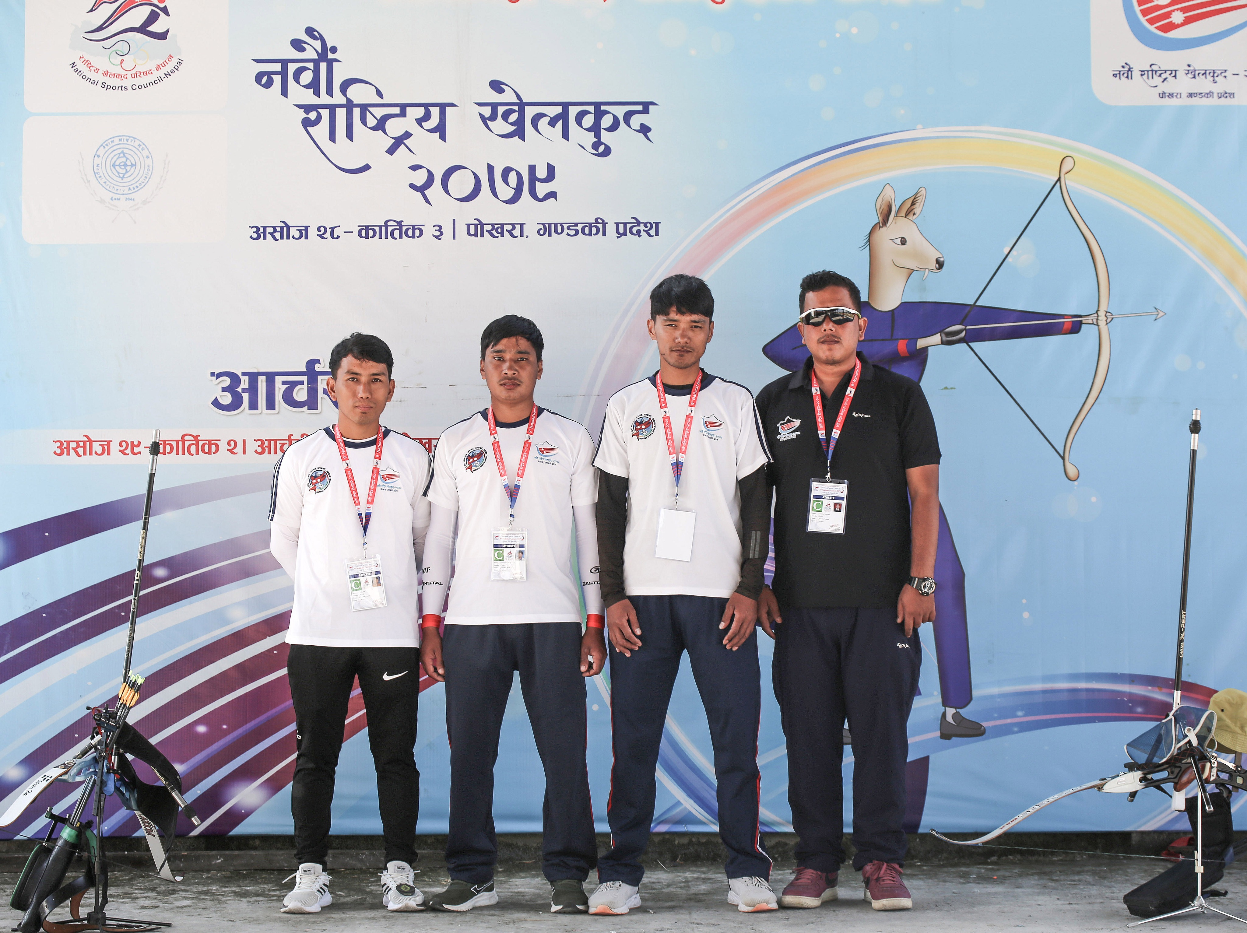 नवौं राष्ट्रिय खेलकुद अन्तरगत पोखराको आर्चरी मैदामा भएको प्रतिस्पर्धाम स्ट्याण्डर्ड पुरुष टिम इभेन्टमा गण्डकीले स्वर्ण जितेको छ । गण्डकीको दुर्गा घर्ती मगर, खड्ग घर्ती, रज्नु पुन र कृष्ण भण्डारीको टिमले सुदूरपश्चिम प्रदेशलाई पछि पार्दै स्वर्ण जितेका हुन् । सुदूरले रजत र नेपाल पुलिसले कास्य पदक प्राप्त गर्यो ।