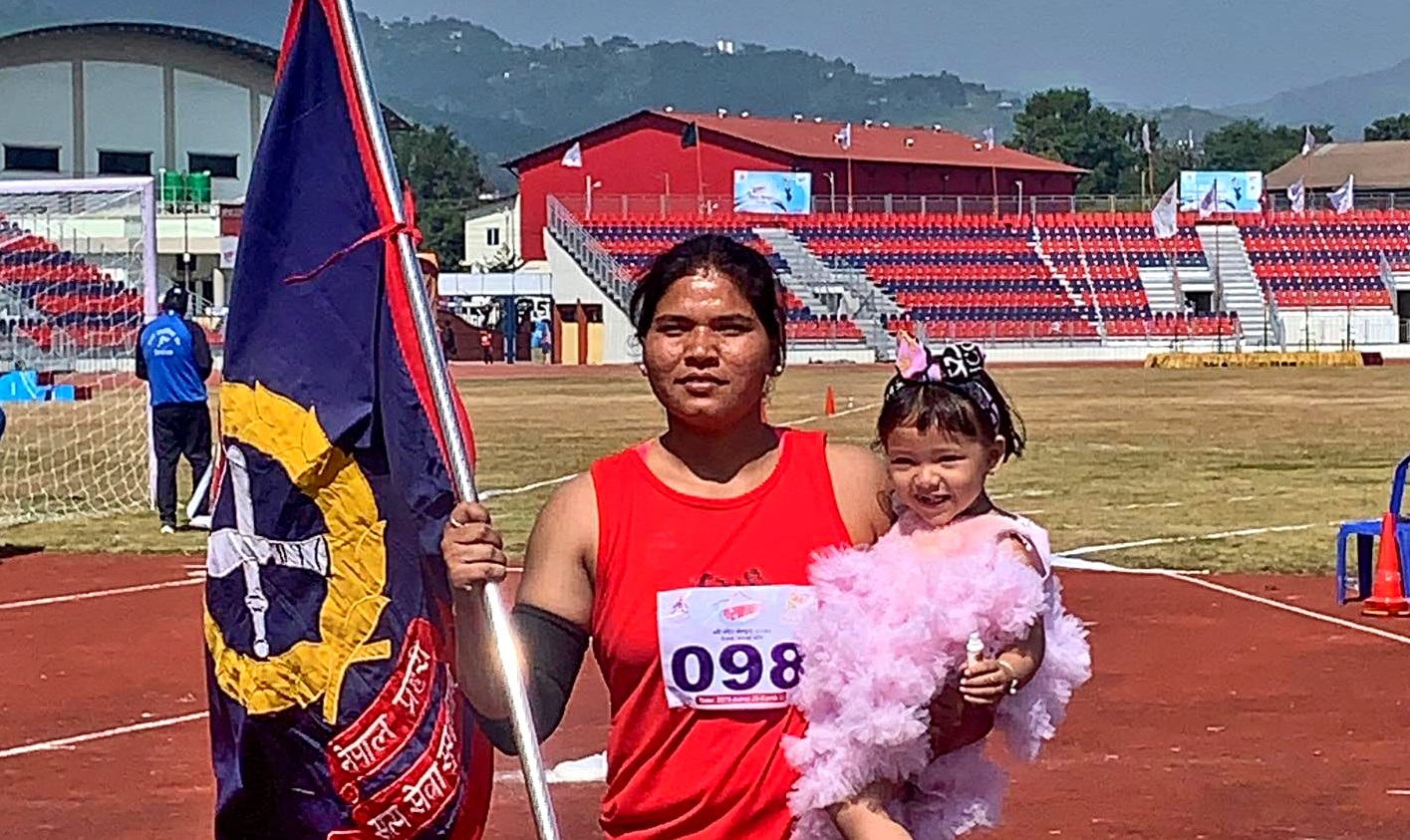 यसअघि यो कीर्तिमान आर्मीकी लक्ष्मी थारुको नाममा थियो। आठौं राष्ट्रिय खेलकुदमा उनले ४५.२७ मिटर थ्रो गर्दै कीर्तिमान बनाएकी थिइन्।