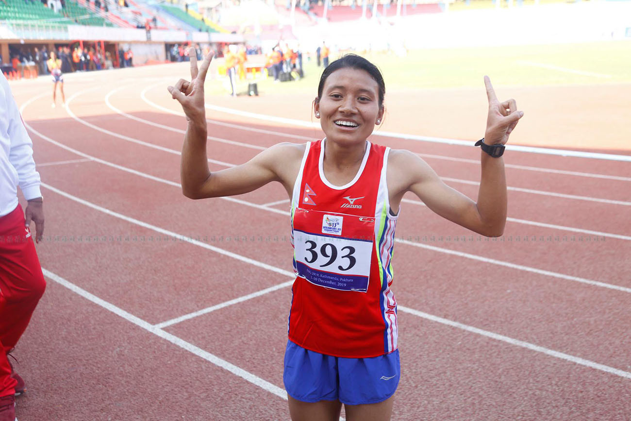 सन्तोषीले मंगलबार दशरथ रंगशालाको ट्र्याकमा भएको प्रतिस्पर्धामा भारतीय धाविका कविता यादवलाई मिलिसेकेन्डमा पछि पारेर स्वर्ण जितेकी हुन्।