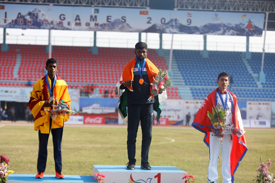 पुरुष १० हजार मिटर दौडमा भारतका सुरेश कमारले निर्धारित दुरी २९.३३.६१ सेकेण्डमा पुरा गरे। श्रीलंकाका सानमुगेश्वरनले निर्धारित दुरी ३०.४९.३० सेकेण्डमा पुरा गर्दै र नेपालका दिपक अधिकारीले निर्धारित दुरी ३०.४९.३० सेकेण्डमा पुरा गर्दै कास्य पदक जिते।
