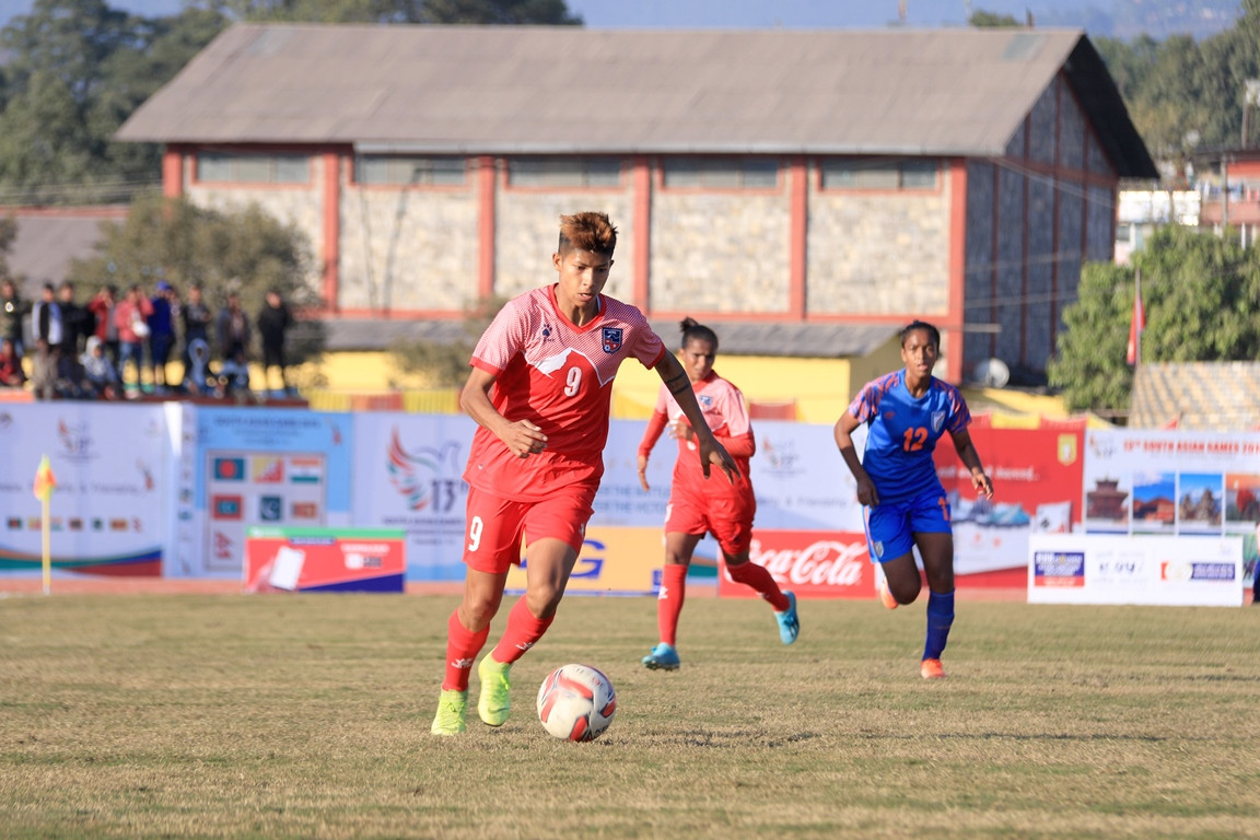नेपालमा जारी १३औँ दक्षिण एशियाली खेलकूद (साग) अन्तर्गतको महिला फुटबलमा आयोजक नेपाल चीरपरिचित प्रतिष्पर्धी भारतसँग पराजित भएको छ। पोखरा रङ्गशालाको फुटबल मैदानमा आज लिग चरणको अन्तिम खेलमा नेपाल भारतसँग १–० गोलअन्तरले पराजित भएको हो।
