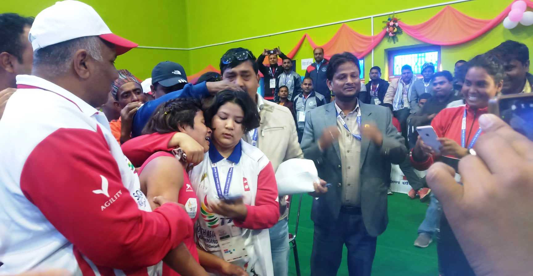 नेपालका लागि ऐतिहासिक स्वर्ण जितेपछि संगीताले आँशु थाम्न सकिनन्। जितको खुसीले उनी रून थालेपछि प्रशिक्षक र सहयोगीले सम्हाले। सङ्गीता रोएपछि कवर्डहलमा उपस्थित दर्शक समेत भावुक बनेका थिए।