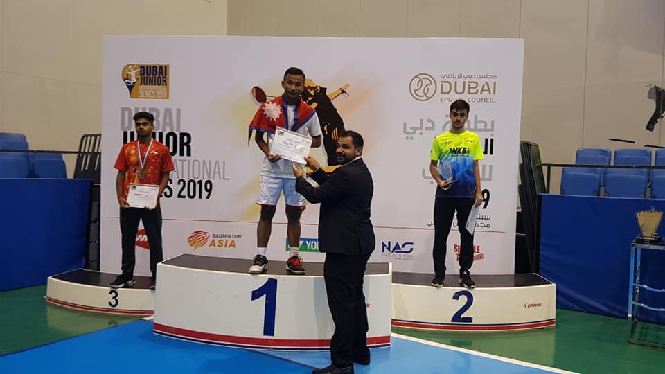 नेपालका प्रिन्स दाहालले संयुक्त अरब इमिरेटस् (युएई)मा जारी दुबई जुनियर इन्टरनेशनल ब्याडमिन्टन सिरिजअन्तर्गत यु–१९ ब्वाइजतर्फको स्वर्ण पदक जितेका छन् ।