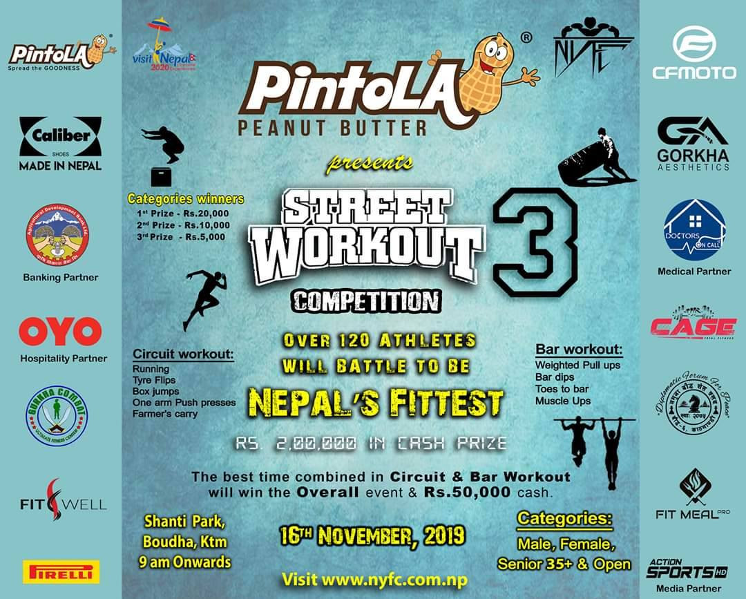 ‘तेस्रो स्ट्रिट वर्कआउट’ नामाकरण गरिएको प्रतियोगितामा महिला, पुरुष, ३५ वर्षमाथि र खुला गरी ४ वटा विधामा १ सय २१ खेलाडीले भाग लिदैछन्। जसमा बंगलादेशबाट एक महिला खेलाडीको सहभागिता रहने आयोजकले जानकारी दिएको छ।