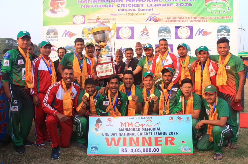मनमोहन मेमोरियल (एमएम) राष्ट्रिय एकदिवसीय क्रिकेट प्रतियोगिताको उपाधि त्रिभुवन आर्मी क्लबले जितेको छ।
