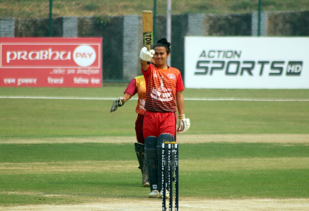 ललितपुरका लागि अस्मिना कर्माचार्यले नटआउट २० रनको योगदान दिइन्।