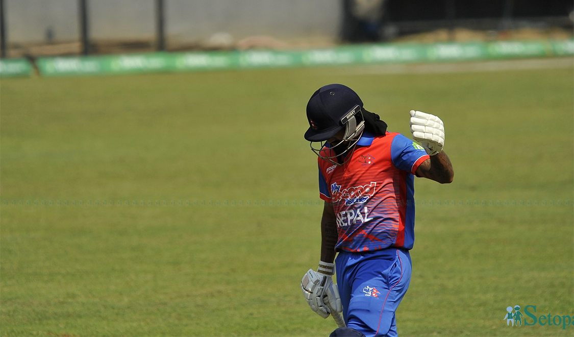 कप्तान ज्ञानेन्द्र मल्ल आउट भएपछि ऐरी ब्याटिङ गर्न आएका थिए।