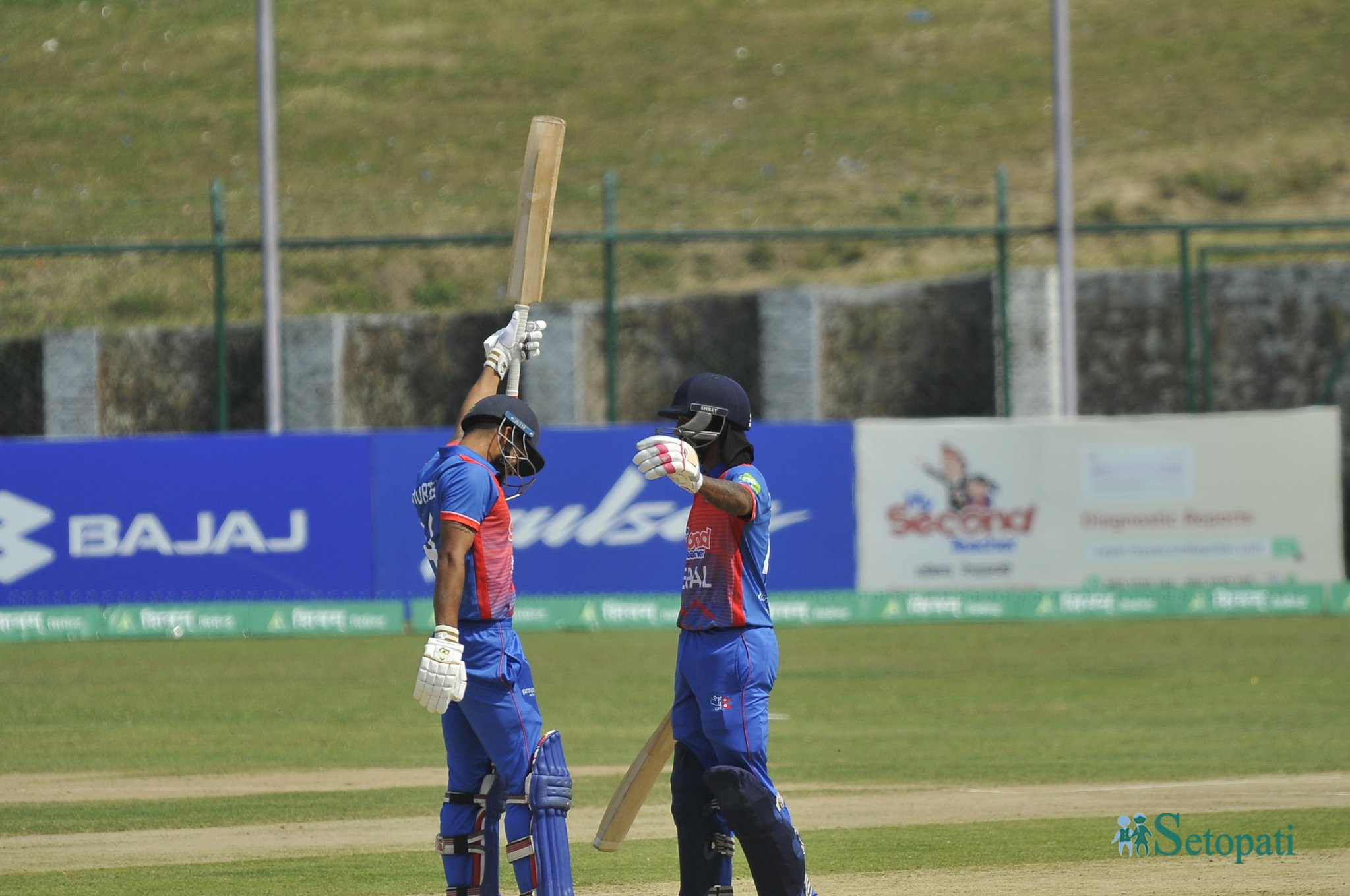 नेपालका लागि कुशल भुर्तेल र दीपेन्द्र सिंह ऐरीले अर्धसतक बनाए। भुर्तेलले ६२ रन बनाउँदा ऐरीले ६० रन जोडे।