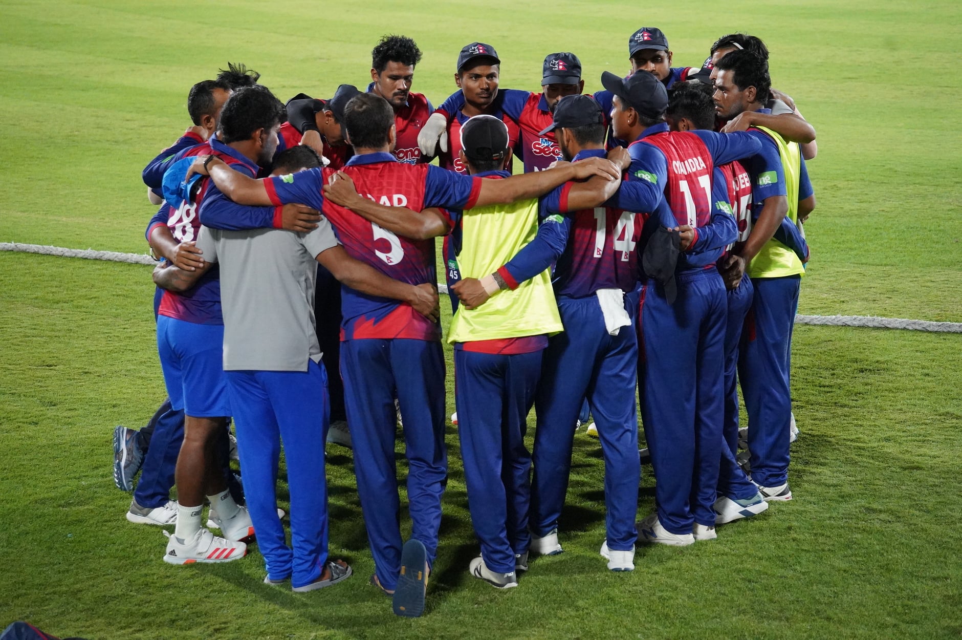 रोहित पौडेल ६ रनमा आउट हुँदा शरद भेषवाकरले नटआउट १ रन जोडे।