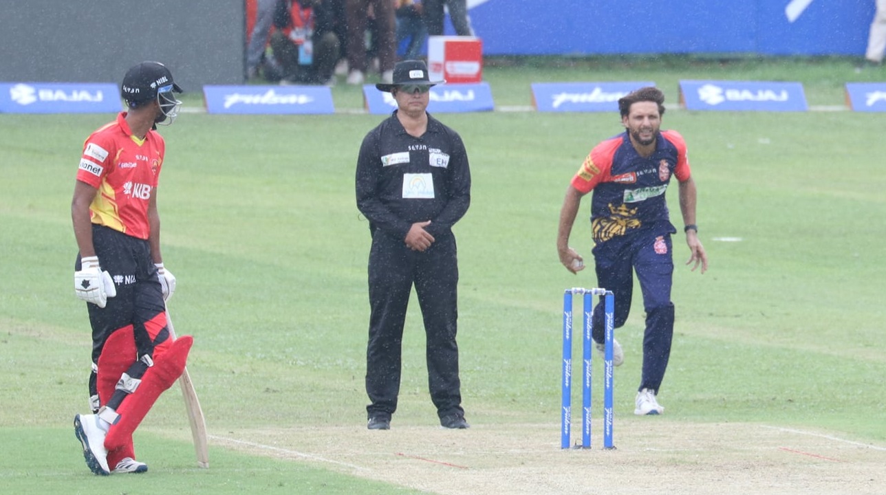 काठमाडौंमा पाकिस्तानका पूर्वकप्तान शाहिद अफ्रिदी पनि आबद्ध छन्। उनले खेलमा चार ओभर बलिङ गरे पनि विकेट लिन सकेनन्। उनले चार ओभरमा ३२ रन खर्चिए। त्यसक्रमा उनले २ चौका र २ छक्का दिए।