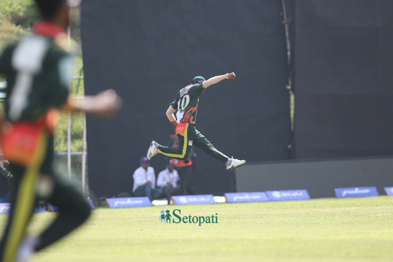 चितवनका कमल सिंह ऐरीले ४ विकेट लिए। यस्तै करिम जनत र सेकुग्गे प्रसन्नले २/२ विकेट लिए। सोमपाल कामी र सागर ढकालले १/१ विकेट लिए।